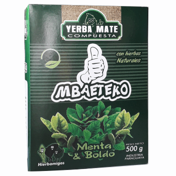 Yerba Mate Compuesta Mbaeteko, es el resultado de mucha experiencia en el rubro de la yerba mate. Menta y Boldo esta compuesta por: *Yerba Mate ( Ilex paraguariensis)